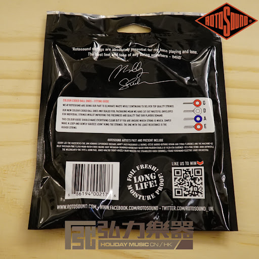 英國Rotosound琴弦,作爲世界的手工制弦世家,Rotosound秉承“打造世界上的琴弦”的宗旨,在世界各地有着無數的追隨者,其中包括Yes、Iron Maiden、Cradle Of Filth、Pink Floyd等超樂隊的使用,更是擁有包括Jimi Hendrix、John Entwistle(The Who)、John Paul Jones(Led Zeppelin)、Duff Mckagan(Guns n'roses、Velvet Revolver)、Steve Harris(Ironmaiden)這樣藝人的一致推崇。 1958年英格蘭人James How,用由他自主發明的堪稱經典的半自動制弦機,製造Rotosound琴弦。53年後的今天,這個曾經讓無數人感動的英國老牌琴絃依然在續寫着它不滅的輝煌。 BS66為Billy Sheehan的縮寫,特殊的43-110弦徑 Billy Sheehan所慣用的手法與技巧需要這種特殊Size 系 列:Roto Bass 66 型 號:RSXB-66-4-BS66 弦 徑:43/65/80/110 主材質:Stainless Steel 產 地:英國UK Rotosound BS66 Swing Bass 66 Billy Sheehan Custom Stainless Steel Roundwound Bass Guitar Strings - .043-.110 Medium Long Scale 4-string Rotosound Billy Sheehan Signature Round-wound Stainless Steel Swing Bass Strings Features at a Glance: For 32" - 34" scale 4-string basses .043, .065, .080, .110 Round-wound Stainless steel SWING BASS 66 BILLY SHEEHAN CUSTOM | 43-110 These strings, custom gauged by Billy Sheehan, provide the time tested Rotosound Swing Bass 66 standard set with two special advantages: A slightly lighter G provides a more even string to string tension across the neck and makes bending easier. A heavier E string makes for a tighter low end with increased mass for more volume in the lower register. The 0.110″ gauge also facilitates tuning down to a low ‘D’ without the string bottoming out or loss of intonation.